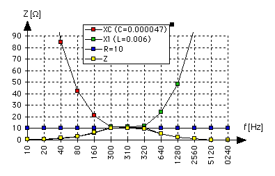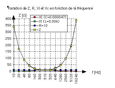 et Xc. On constate que la valeur de l'impédance est au minimum pour une fréquence
